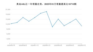 2025年7月,奥迪A6L销量为10778辆,同比下降12.25%,环比下降28.86%。2024年07月-2025年07月份,奥迪A6L销量为184939辆,同比下降7.76%。