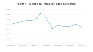 2025年7月,帕萨特销量为16579辆,同比下降17.12%,环比下降17.14%。2024年07月-2025年07月份,帕萨特销量为274714辆,同比增长16.64%。