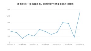 2025年7月,腾势品牌总体销量达到1388辆,其中腾势D9销量达到1388辆,占品牌总销量的100%。