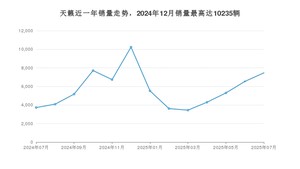 2025年7月,天籁销量为7459辆,同比增长100.19%,环比增长14.09%。2024年07月-2025年07月份,天籁销量为73827辆,同比下降22.72%。