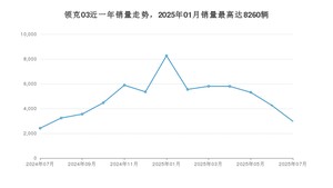 2025年7月,领克03销量为2973辆,同比增长23.26%,环比下降30.13%。2024年07月-2025年07月份,领克03销量为62823辆,同比下降14.3%。