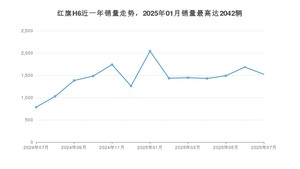 2025年7月,红旗H6销量为1523辆,同比增长94.01%,环比下降9.56%。2024年07月-2025年07月份,红旗H6销量为18720辆,同比增长38.01%。
