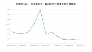 2025年7月,ZEEKR X销量为465辆,同比下降62.23%,环比增长2.2%。2024年07月-2025年07月份,ZEEKR X销量为14696辆,同比下降38.98%。