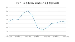 2025年7月,领裕销量为168辆,同比下降4.55%,环比下降6.15%。2024年07月-2025年07月份,领裕销量为2329辆,同比下降59.87%。