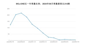 2025年7月,MG ONE销量为5辆,同比下降95.93%,环比持平。2024年07月-2025年07月份,MG ONE销量为1074辆,同比下降67.02%。