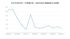 2025年7月,东风风神E70销量为214辆,同比下降79.94%,环比下降26.96%。2024年07月-2025年07月份,东风风神E70销量为5990辆,同比下降78.26%。