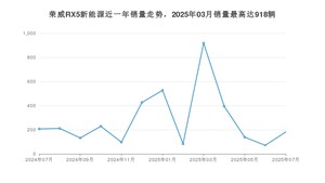 2025年7月,荣威RX5新能源销量为182辆,同比下降12.08%,环比增长156.34%。2024年07月-2025年07月份,荣威RX5新能源销量为3616辆,同比下降29.62%。
