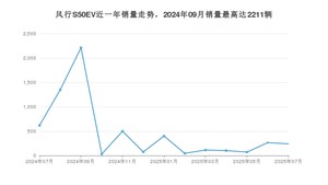 2025年7月,风行S50EV销量为240辆,同比下降61.17%,环比下降9.43%。2024年07月-2025年07月份,风行S50EV销量为6021辆,同比增长41.54%。