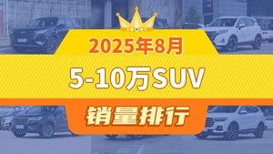 2025年8月5-10万SUV销量排行榜,缤越位居第二,第一名你绝对想不到