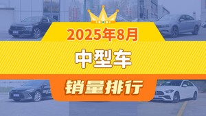 2025年8月中型车销量排行榜,Model 3位居第二,第一名你绝对想不到