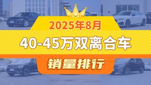 2025年8月40-45万双离合车销量排行榜,奥迪A6L以12941辆夺冠