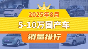 2025年8月5-10万国产车销量排行榜,海鸥位居第二,第一名你绝对想不到