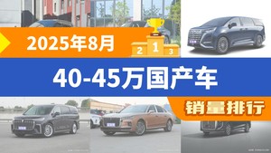2025年8月40-45万国产车销量排行榜,腾势D9屈居第三,红旗HQ9成最大黑马
