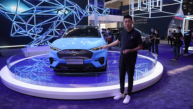 大家好,我是王坚,我现在2020北京车展的现场,我身边这台是福特Mach-E
