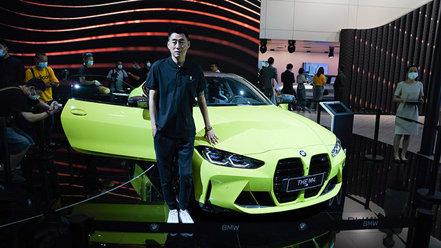 大家好,我是王坚,我现在2020北京车展的现场,我身边这台就是全新一代M3和M4, 新车将会采用与宝马4系相似的巨幅双肾进气格栅,车灯采用黑色装饰,前脸线条更加动感,标志性的M Power铭牌依旧很扎眼,后备箱上方会加入小型的固定式后扰流板,底部采用了十分运动的后包围,双边四处排气,气场很足。